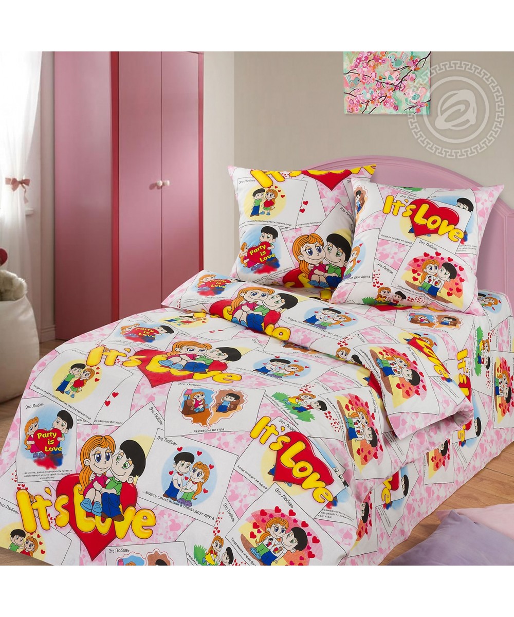 Фон рисунка «Очаровашки» заполнен нежно-розовыми сердечками различных оттенков и вся композиция посвящена теме любви. Фон буквально усыпан рисованными историями, каждая из которых рассказывает, что же такое любовь. Самые крупные детали рисунка – ярко-красные повторяющиеся сердца с медово-желтыми надписями «It’s Love» и нежно обнимающимися героями сюжетов.