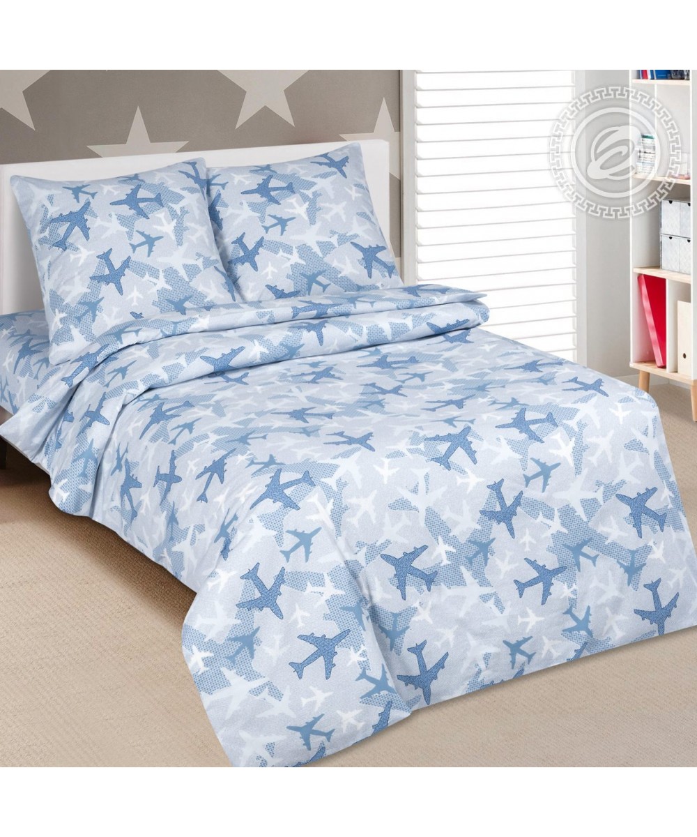 Полеты во сне - не только признак роста, но и прямой путь к осуществлению своей мечты. Комплект из поплина подойдет для будущих мужчин – смелых и целеустремленных.
