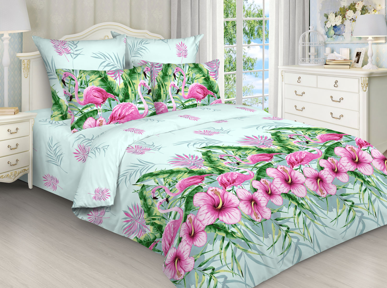 Постельное белье Розовый фламинго семейный, бязь, рис 9462