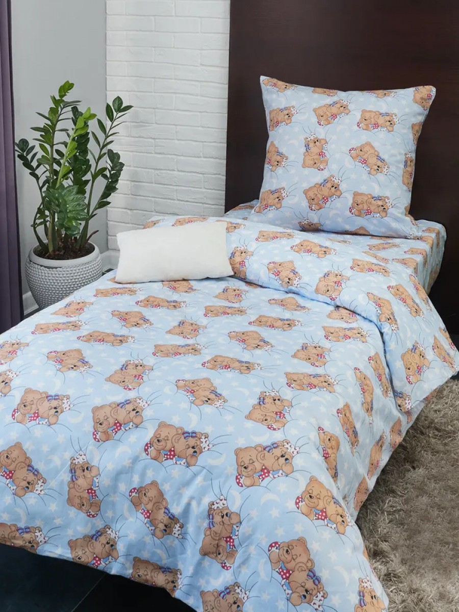 Этот замечательный комплект детского постельного белья будет отличным приобретением для вашего ребенка. Выполненное из бязи, это постельное белье не только отличается интересным и привлекательным дизайном, но и отличается экологичностью, практичностью и износостойкостью. Ткань сохраняет первоначальные свойства даже после большого количества циклов стирки и глажки. В состав комплекта входят: одна простыня 150x214 см, один пододеяльник 143x215 см и одна наволочка 70x70 см. Это стандартный 1,5 спальный комплект для мальчика или девочки. Плотность ткани - 120 г/кв.м., что является золотым стандартом для постельного белья.