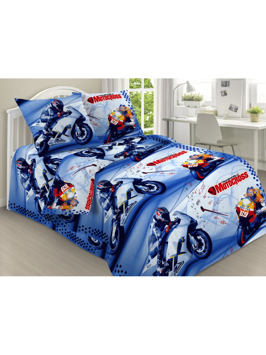 В состав комплекта входит три предмета:один пододеяльник 143x215 см, одна простыня 150x214 см и одна наволочка 70x70 см. Это стандартный 1,5 спальный комплект с выразительным дизайном.