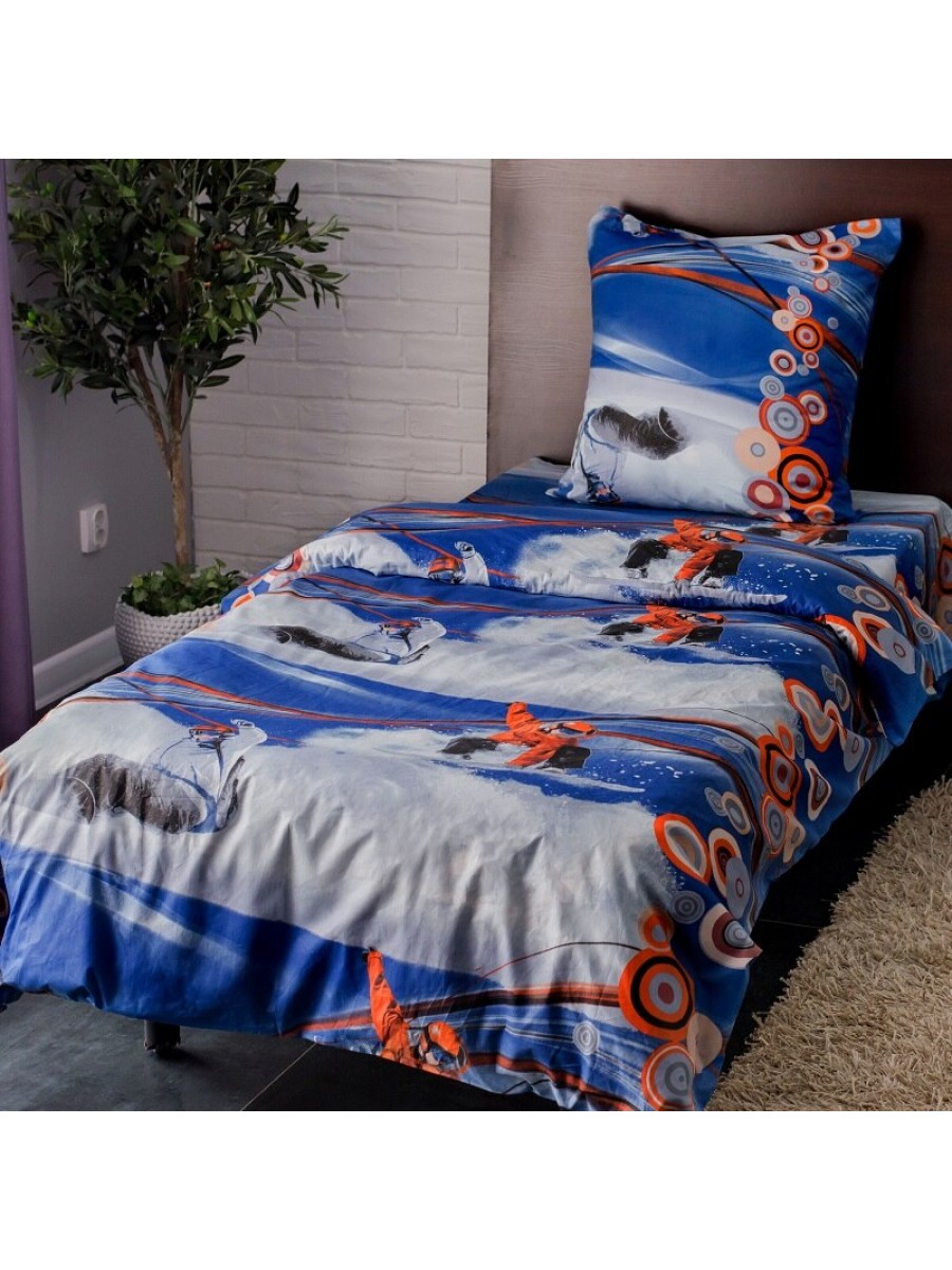 Детское постельное белье Сноуборд 1,5 спальный, поплин, рис 1635/1