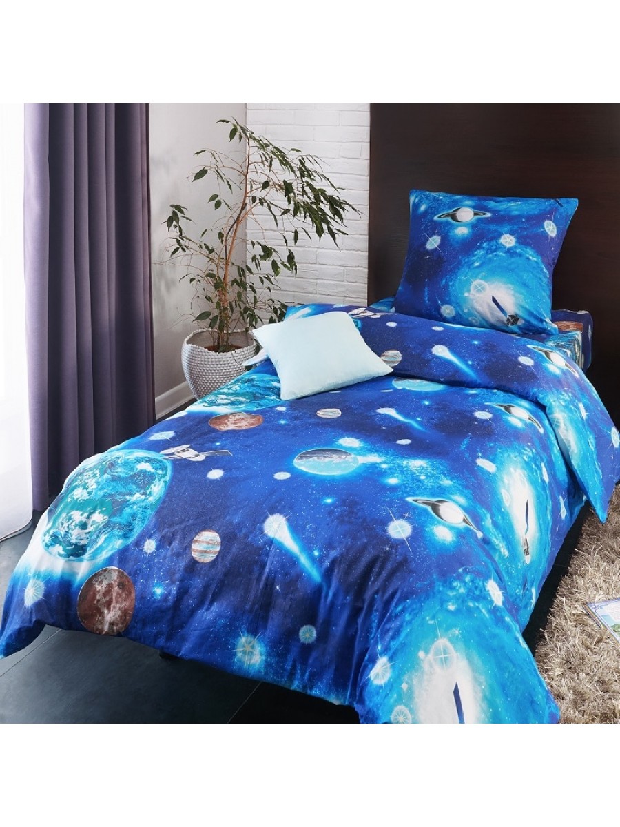 Детское постельное белье Космос 1,5 спальный, поплин, рис 1716/1