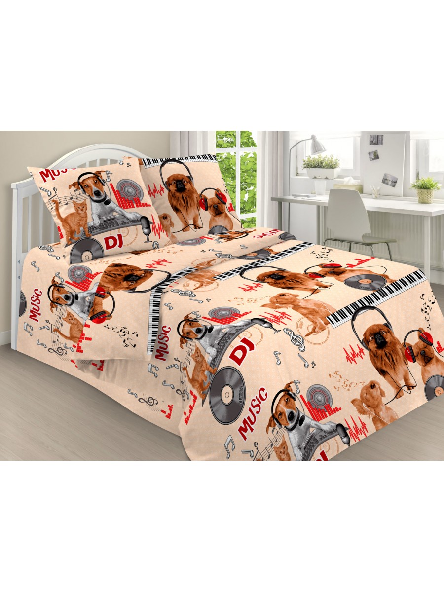 В состав комплекта входит три предмета:один пододеяльник 143x215 см, одна простыня 150x214 см и одна наволочка 70x70 см. Это стандартный 1,5 спальный комплект с выразительным дизайном.