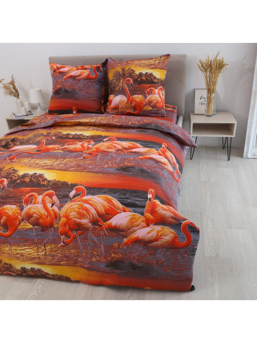 Постельное белье Фламинго на закате 1,5 спальный, бязь, рис 2064/1