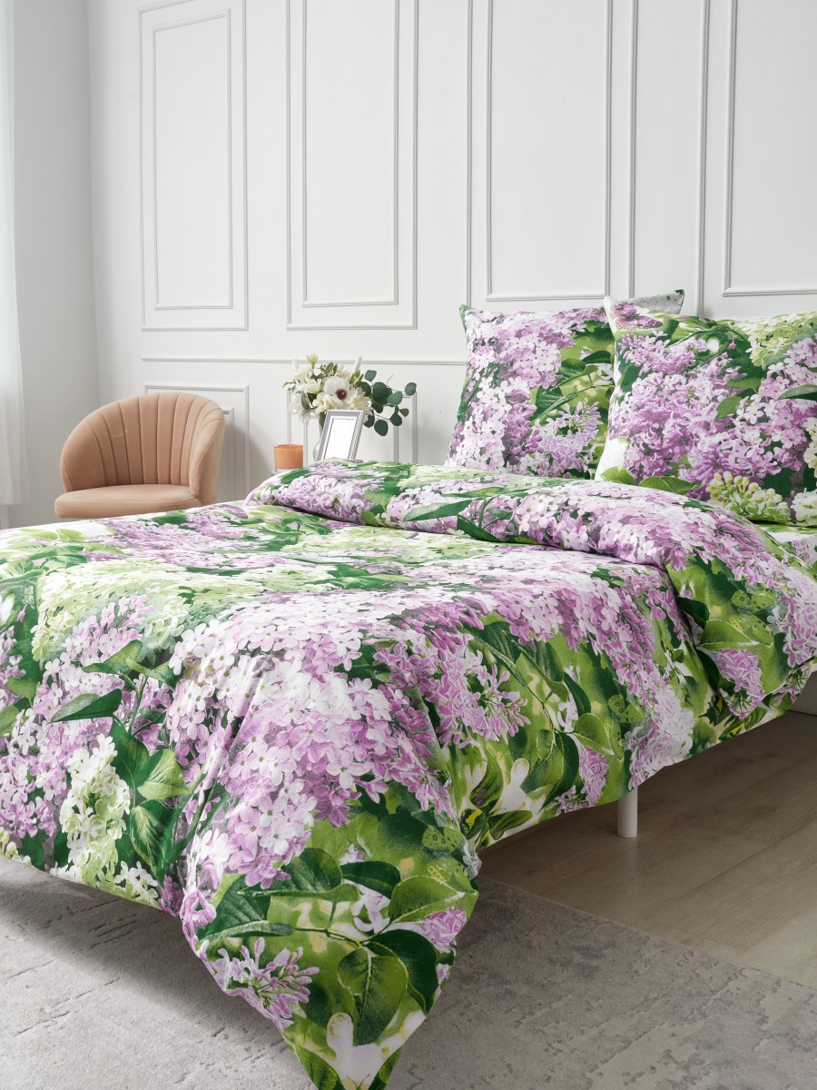 1,5 спальный 143х215 см из бязи плотностью 120 г/м² выполнен из 100% хлопка.