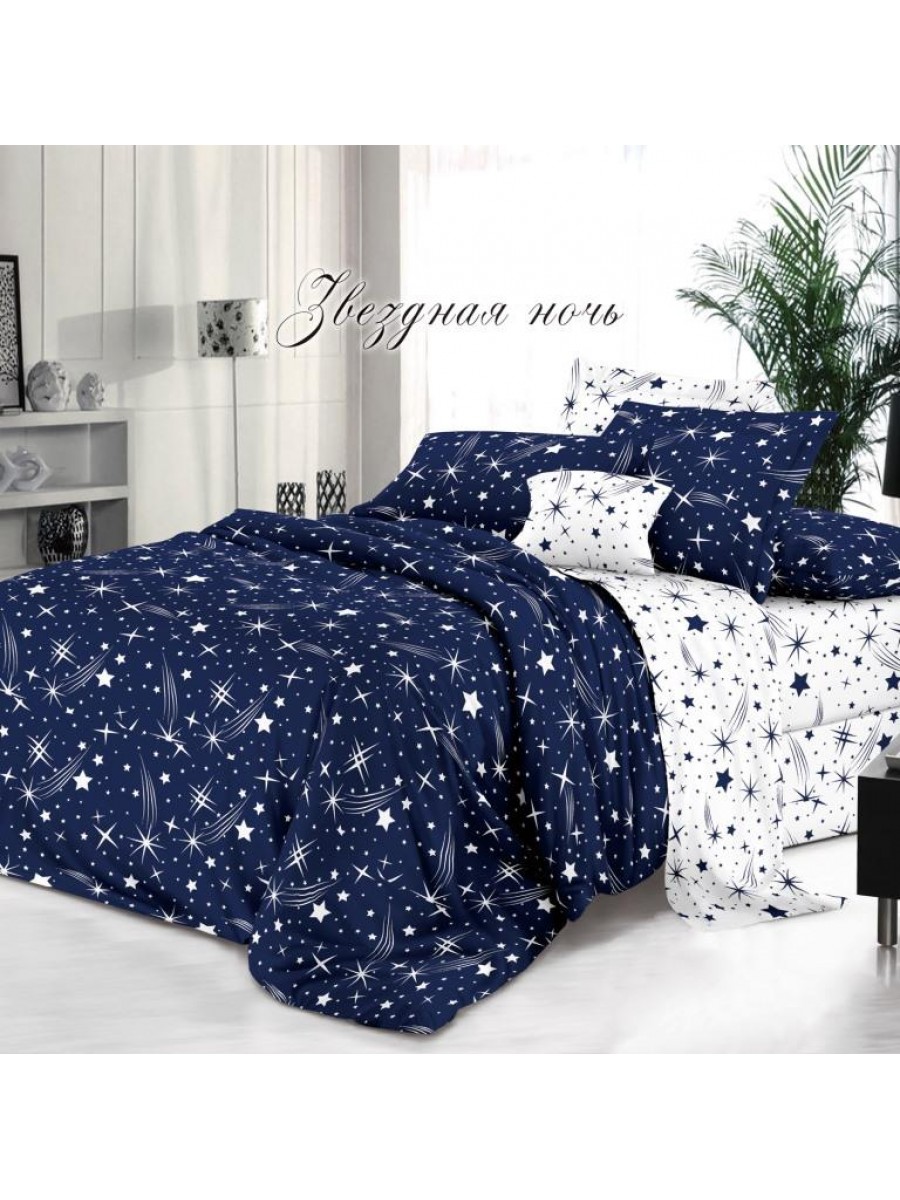 Постельное белье евро, поплин, рис.Звёздная ночь (П3)