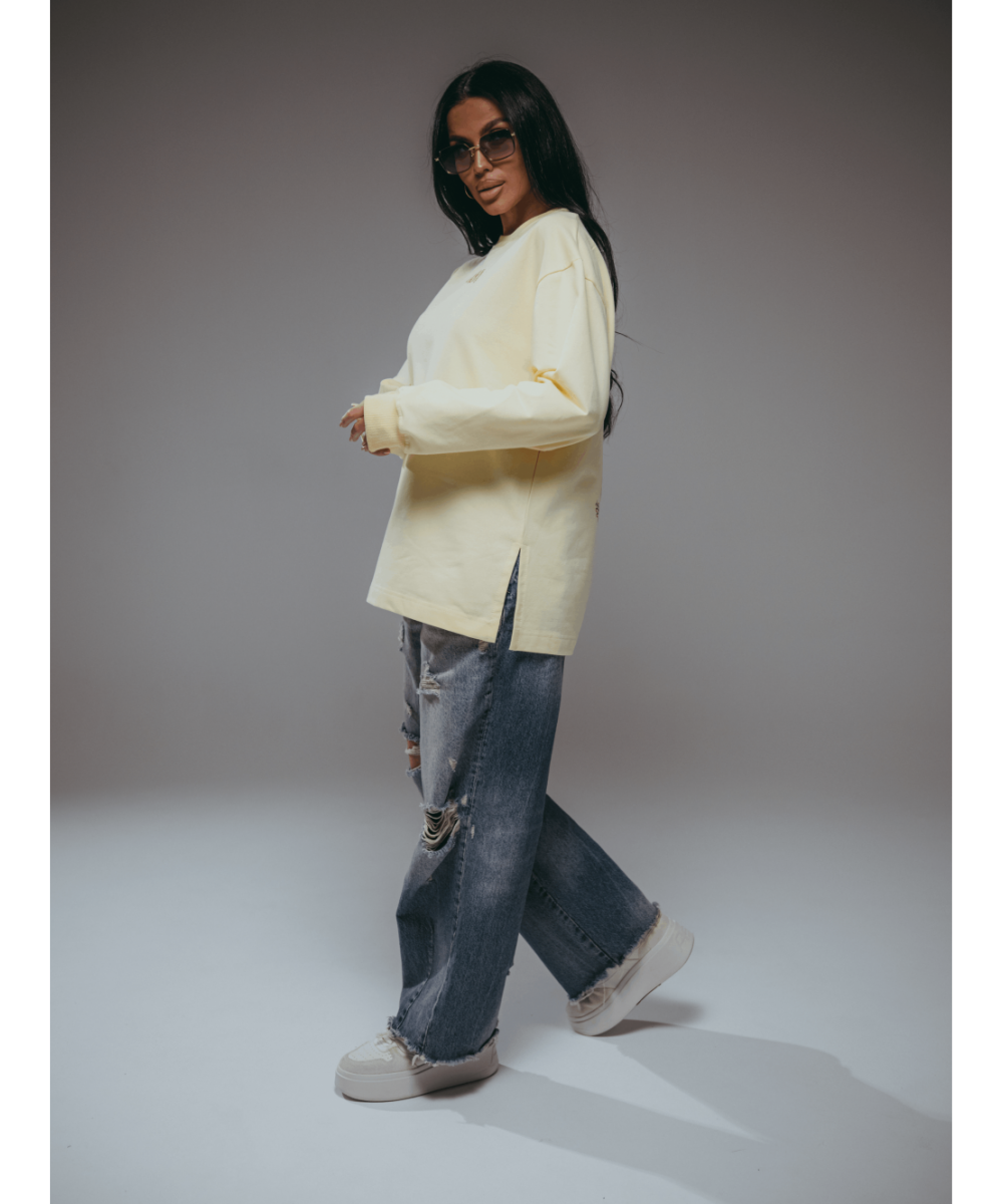 Свитшот прямой - оверсайз со спущенным плечом и длинным втачным рукавом.