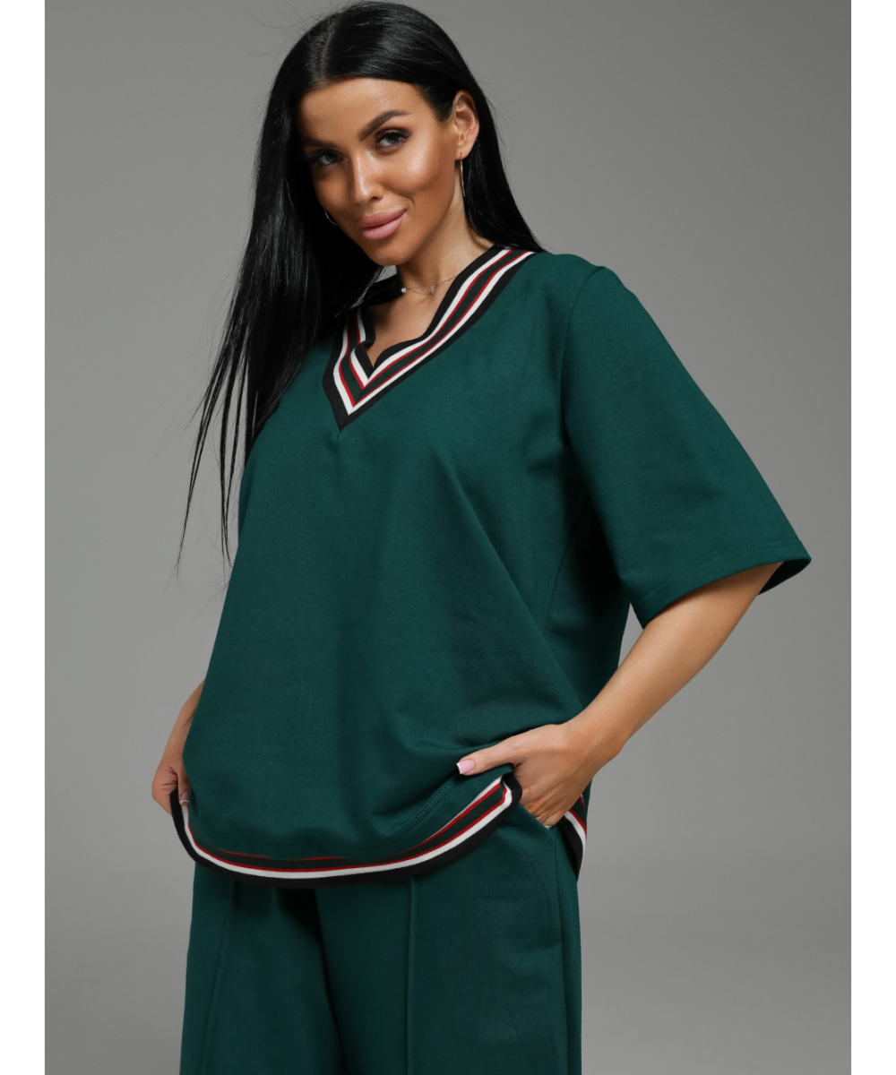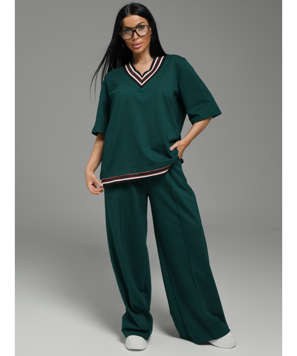 Костюм женский состоит из футболки и брюк.