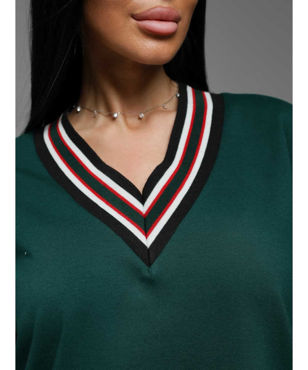 Футболка свободного кроя с коротким рукавом и V-образным вырезом.