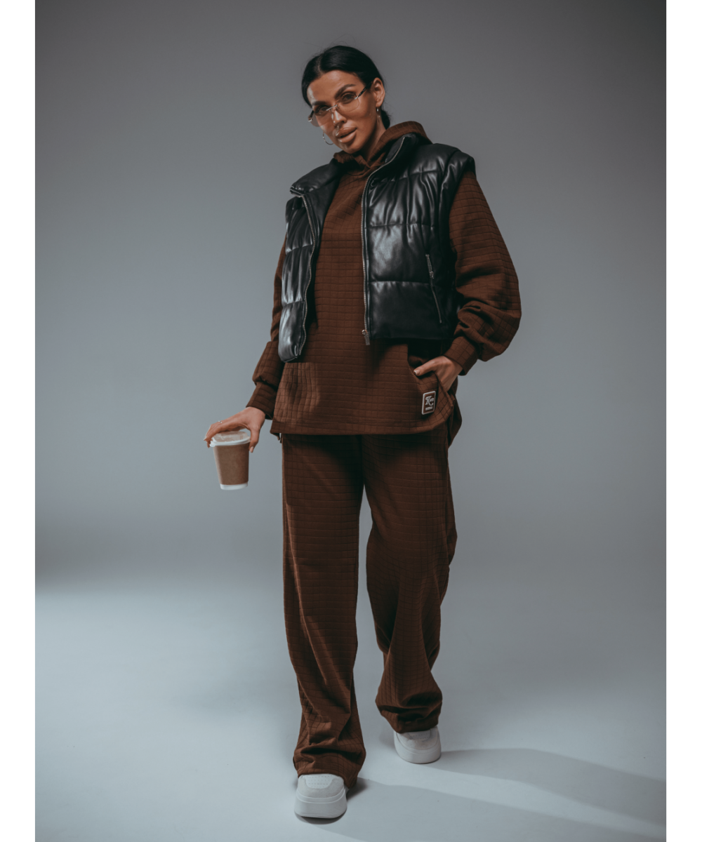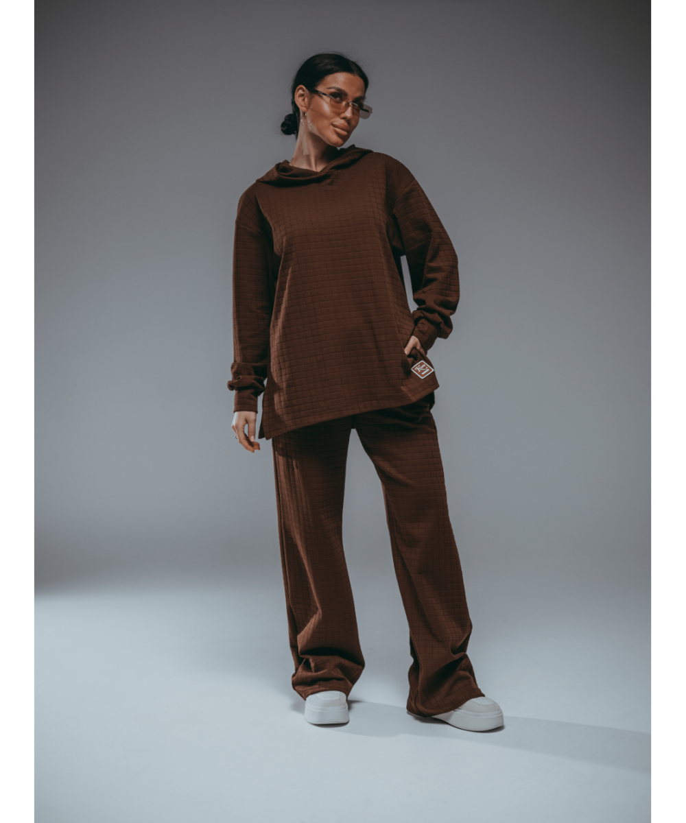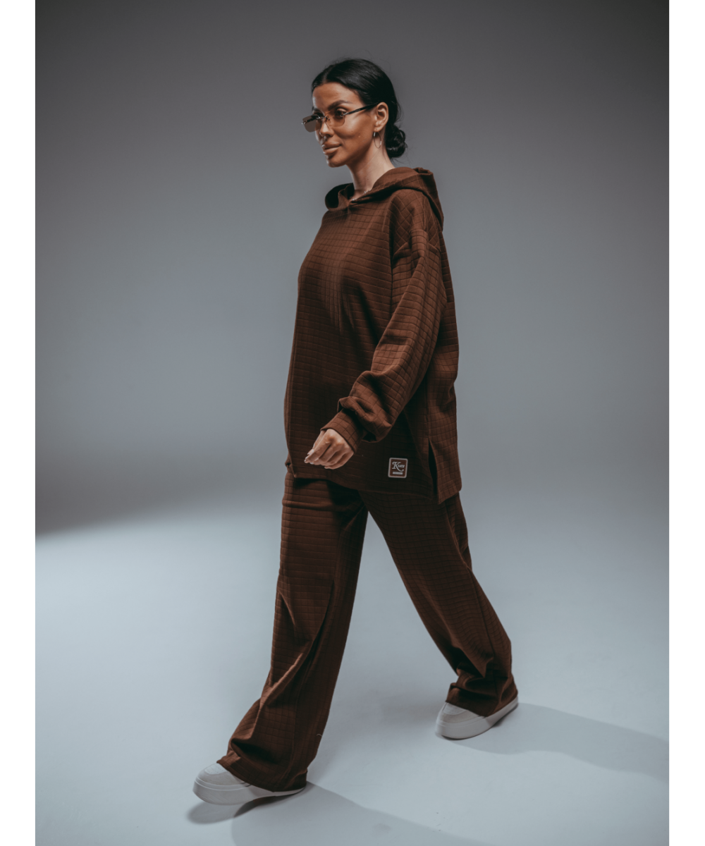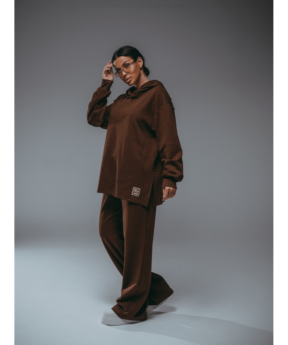 Худи – прямого кроя со спущенной линией плеча, длинным втачным рукавом на манжете.