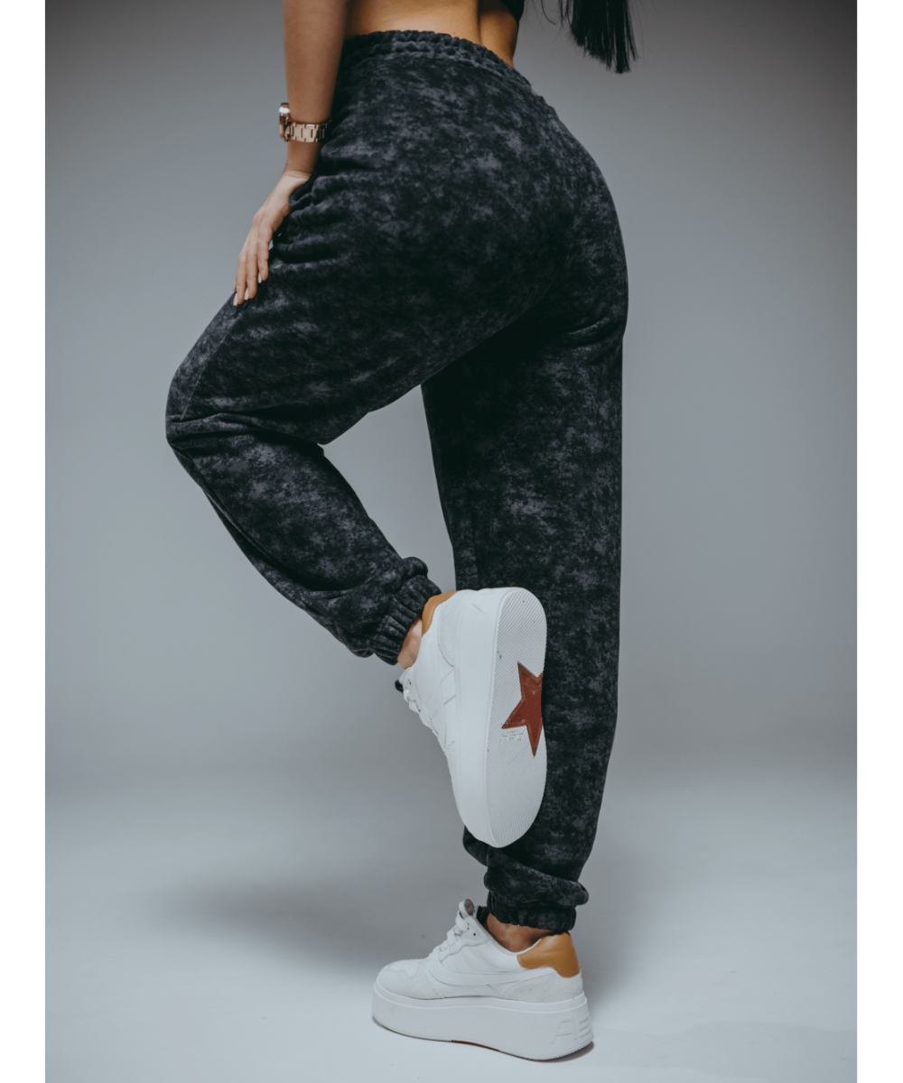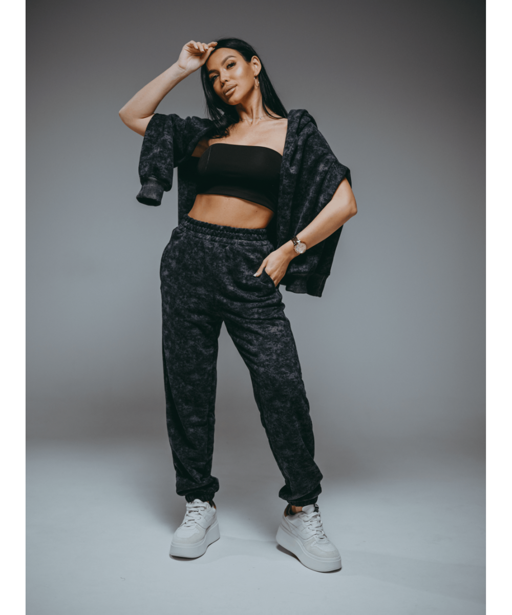 Брюки на резинке с отрезным поясом с карманами.