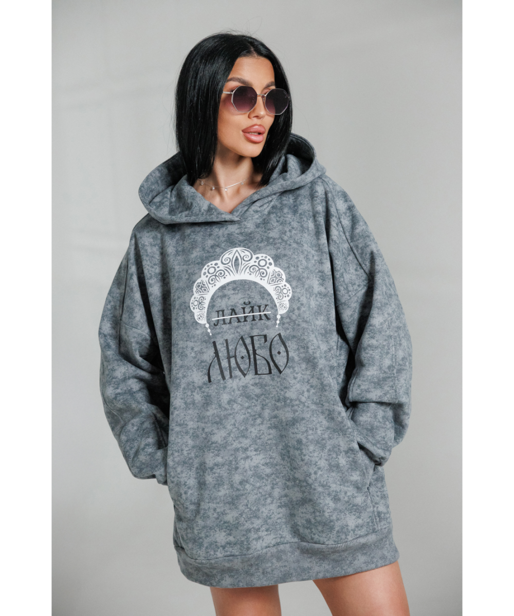 Худи женское oversize с капюшоном. С прорезными карманами.